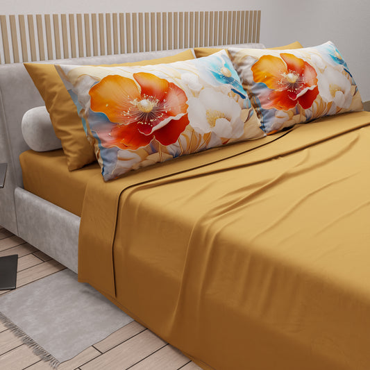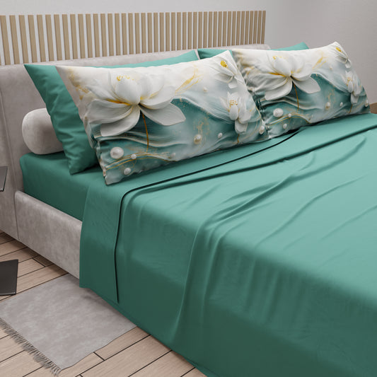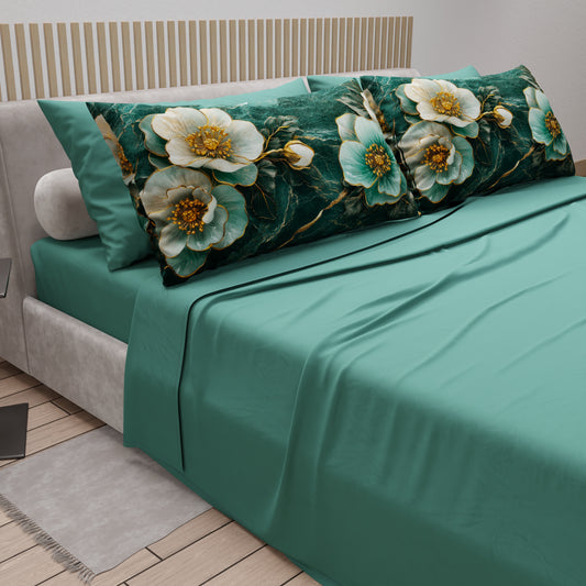 Lenzuola in Cotone, Completo Letto con Federe in Stampa Digitale Floreale 06-10