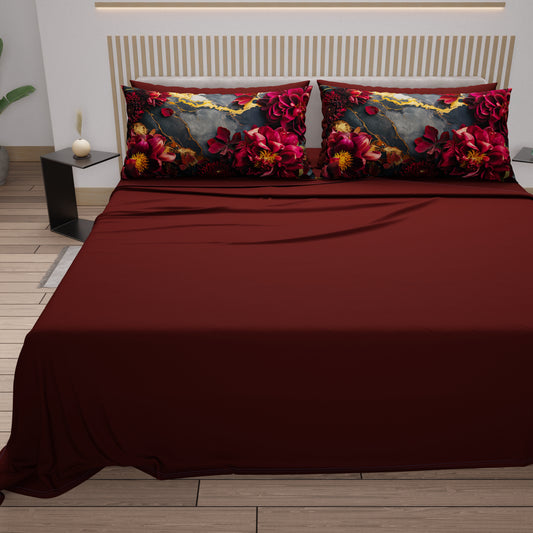 Lenzuola in Cotone, Completo Letto con Federe in Stampa Digitale Floreale 06-4