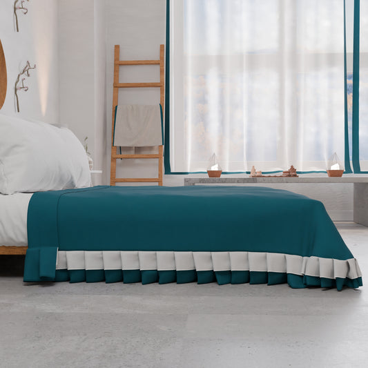 Copriletto Matrimoniale Estivo, Copriletto con Doppio Volant, Blu Notte