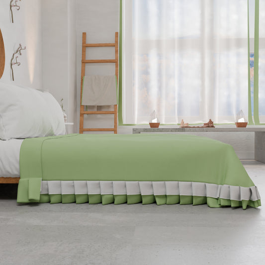 Copriletto Matrimoniale Estivo, Copriletto con Doppio Volant, Salvia