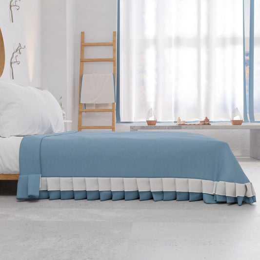 Couvre-lit double été, couvre-lit avec double volant, bleu clair