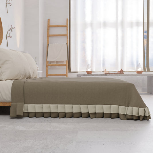 Couvre-lit double été, couvre-lit avec double volant, taupe