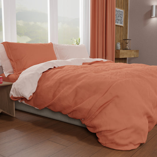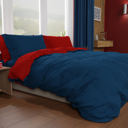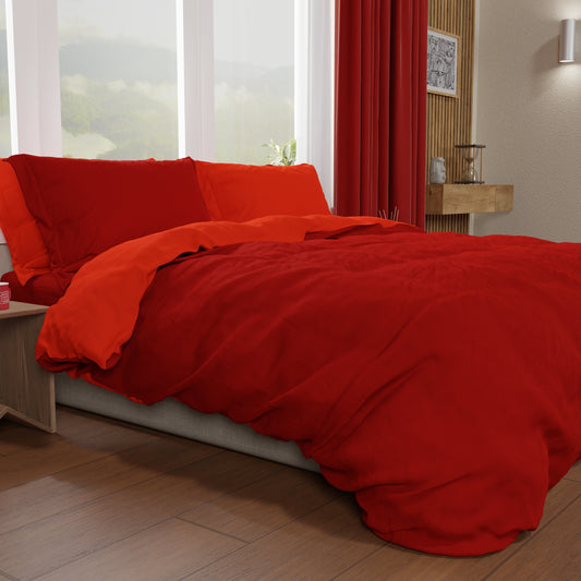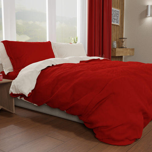 Housse de couette Microfibre Bicolore Rouge-Gris Clair Double