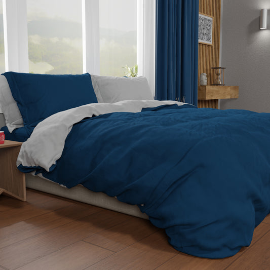 Housse de couette double, housse de couette et taies d'oreiller, gris clair/bleu nuit