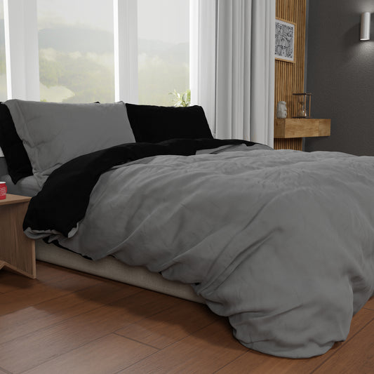 Housse de couette double, housse de couette et taies d'oreiller, gris foncé/clair
