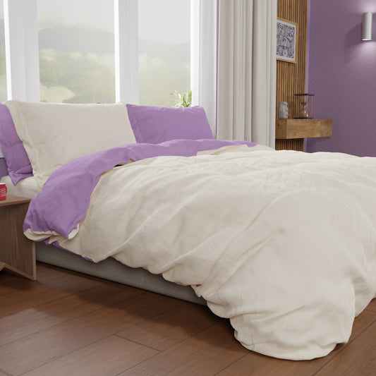 Housse de couette double, housse de couette et taies d'oreiller, lilas/crème