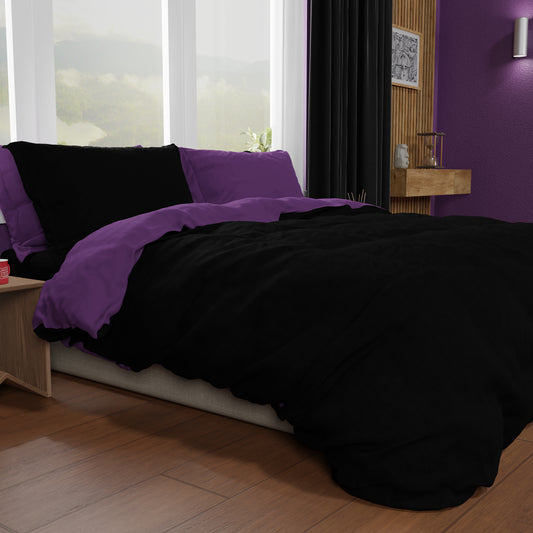 Housse de couette double, housse de couette et taies d'oreiller, noir/violet