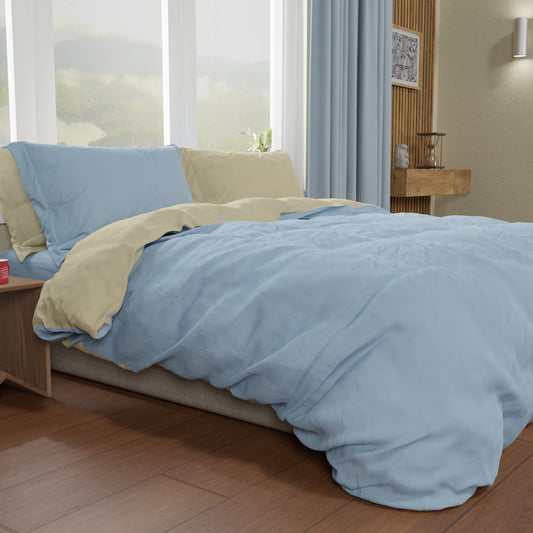Housse de couette double, housse de couette et taies d'oreiller, poudre claire/foncée
