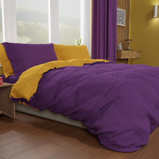 Housse de couette double, housse de couette et taies d'oreiller, violet/jaune ocre
