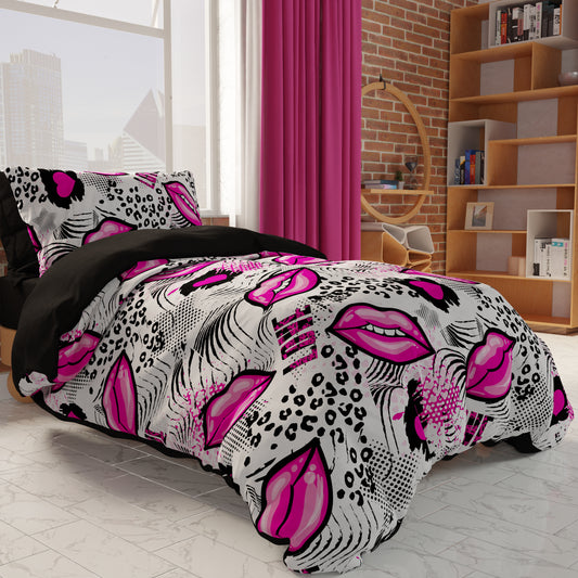 Housse de couette, housse de couette pour chambre à coucher, taille simple et queen, rouge à lèvres rose