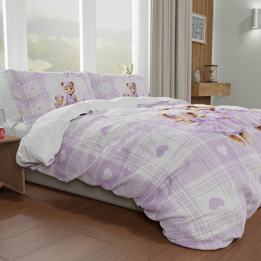 Copripiumino Matrimoniale, Singolo, Una Piazza e Mezza, Teddy Love Lilla