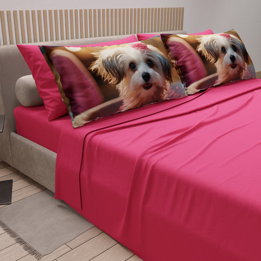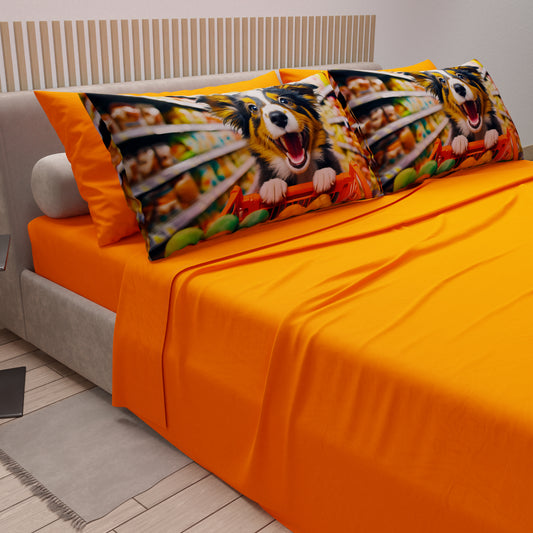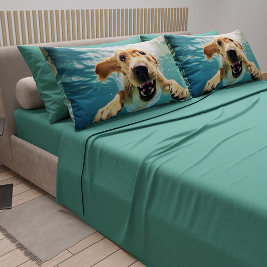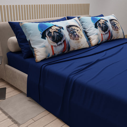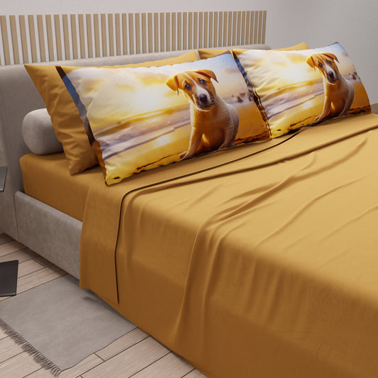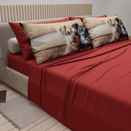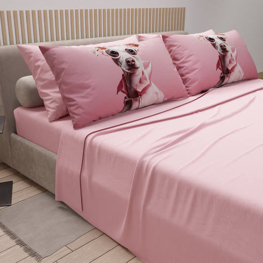Lenzuola in Cotone, Completo Letto con Federe in Stampa Digitale Dog 04
