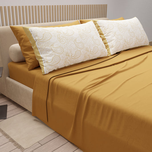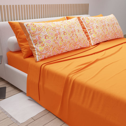 Draps en coton, parure de lit avec taies d'oreiller à impression numérique Paisley orange