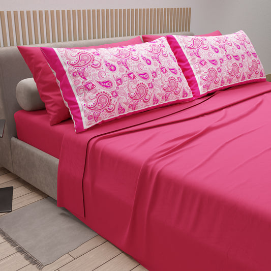 Draps en coton, parure de lit avec taies d'oreiller à impression numérique Fuchsia Paisley