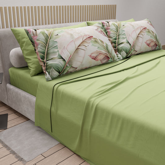 Un abbraccio di pura morbidezza avvolge le nostre lenzuola in tinta unita , impreziosite da federe in stampa digitale . Il loro tessuto innovativo combina la piacevolezza naturale del cotone con una straordinaria leggerezza e praticità, garantendo freschezza, morbidezza e una facile manutenzione nel tempo.