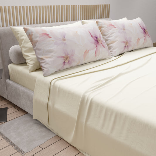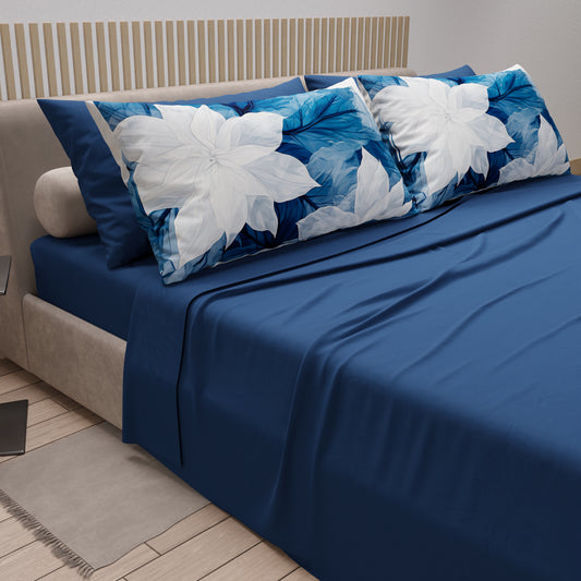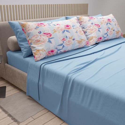 Un abbraccio di pura morbidezza avvolge le nostre lenzuola in tinta unita , impreziosite da federe in stampa digitale . Il loro tessuto innovativo combina la piacevolezza naturale del cotone con una straordinaria leggerezza e praticità, garantendo freschezza, morbidezza e una facile manutenzione nel tempo.