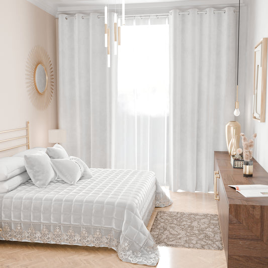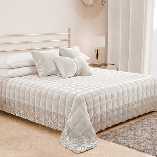 Trapuntino Primaverile in Velluto e Balza con Pizzo Rebrodè Panna