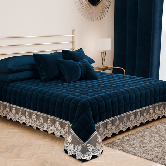 Trapuntino Primaverile in Velluto e Balza con Pizzo Rebrodè Blu
