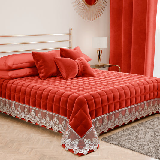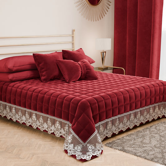 Trapuntino Primaverile in Velluto e Balza con Pizzo Rebrodè Rosso