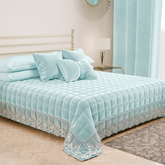 Trapuntino Primaverile in Velluto e Balza con Pizzo Rebrodè Celeste