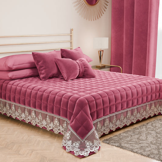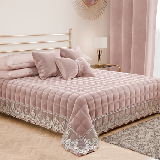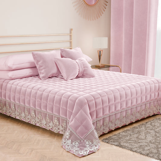 Trapuntino Primaverile in Velluto e Balza con Pizzo Rebrodè Rosa