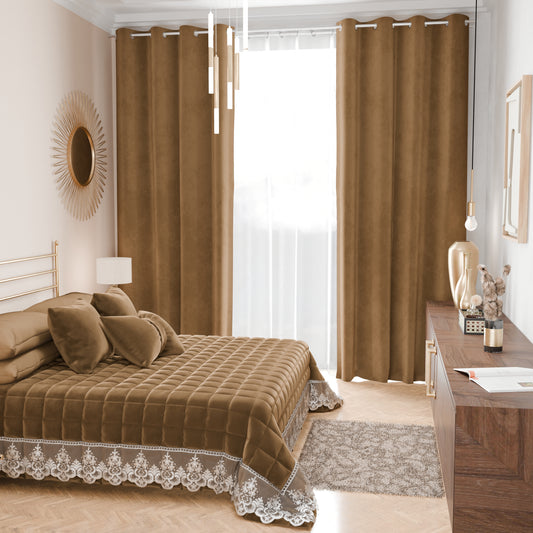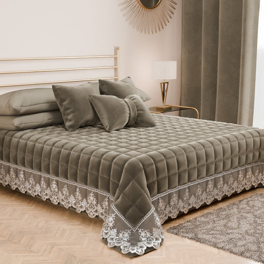 Trapuntino Primaverile in Velluto e Balza con Pizzo Rebrodè Tortora