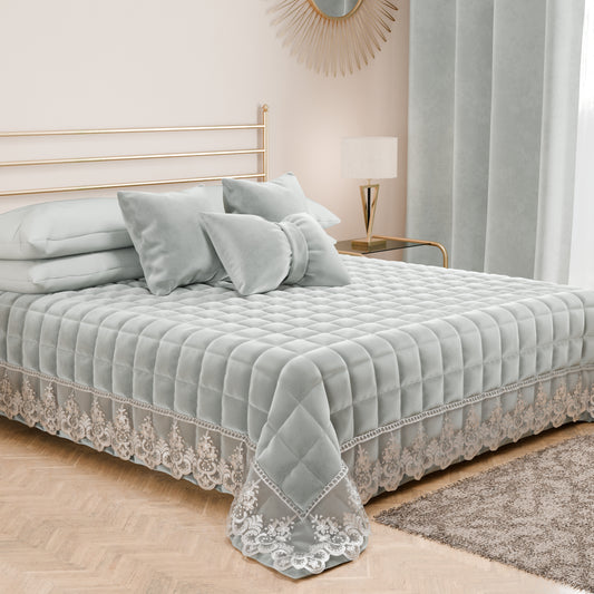 Trapuntino Primaverile in Velluto e Balza con Pizzo Rebrodè Grigio Chiaro