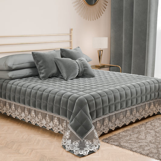 Trapuntino Primaverile in Velluto e Balza con Pizzo Rebrodè Grigio Scuro