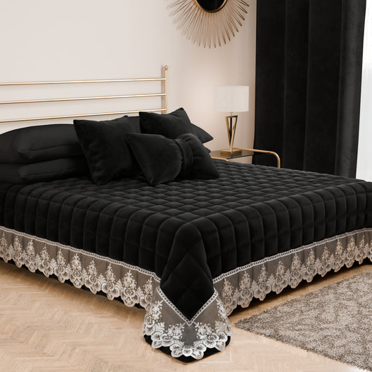 Trapuntino Primaverile in Velluto e Balza con Pizzo Rebrodè Nero