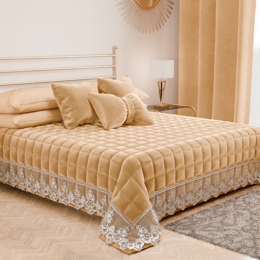Trapuntino Primaverile in Velluto e Balza con Pizzo Rebrodè Oro