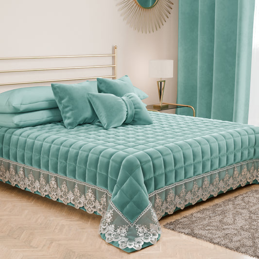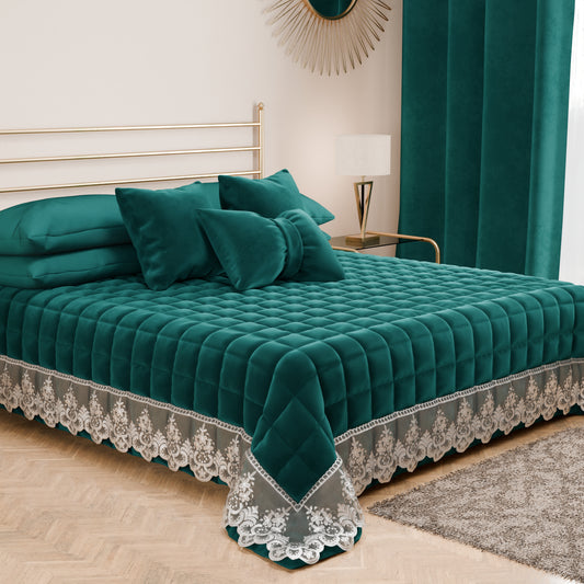 Trapuntino Primaverile in Velluto e Balza con Pizzo Rebrodè Smeraldo