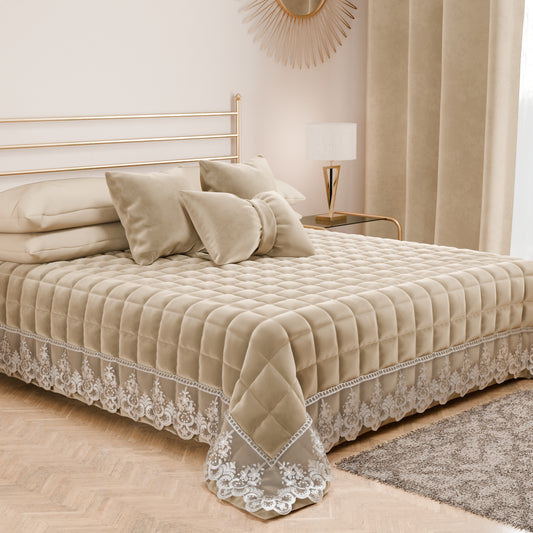 Trapuntino Primaverile in Velluto e Balza con Pizzo Rebrodè Cipria