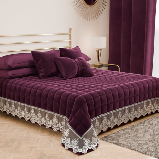 Trapuntino Primaverile in Velluto e Balza con Pizzo Rebrodè Prugna