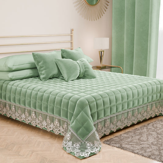 Trapuntino Primaverile in Velluto e Balza con Pizzo Rebrodè Salvia
