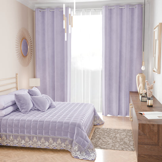 Trapuntino Primaverile in Velluto e Balza con Pizzo Rebrodè Lilla