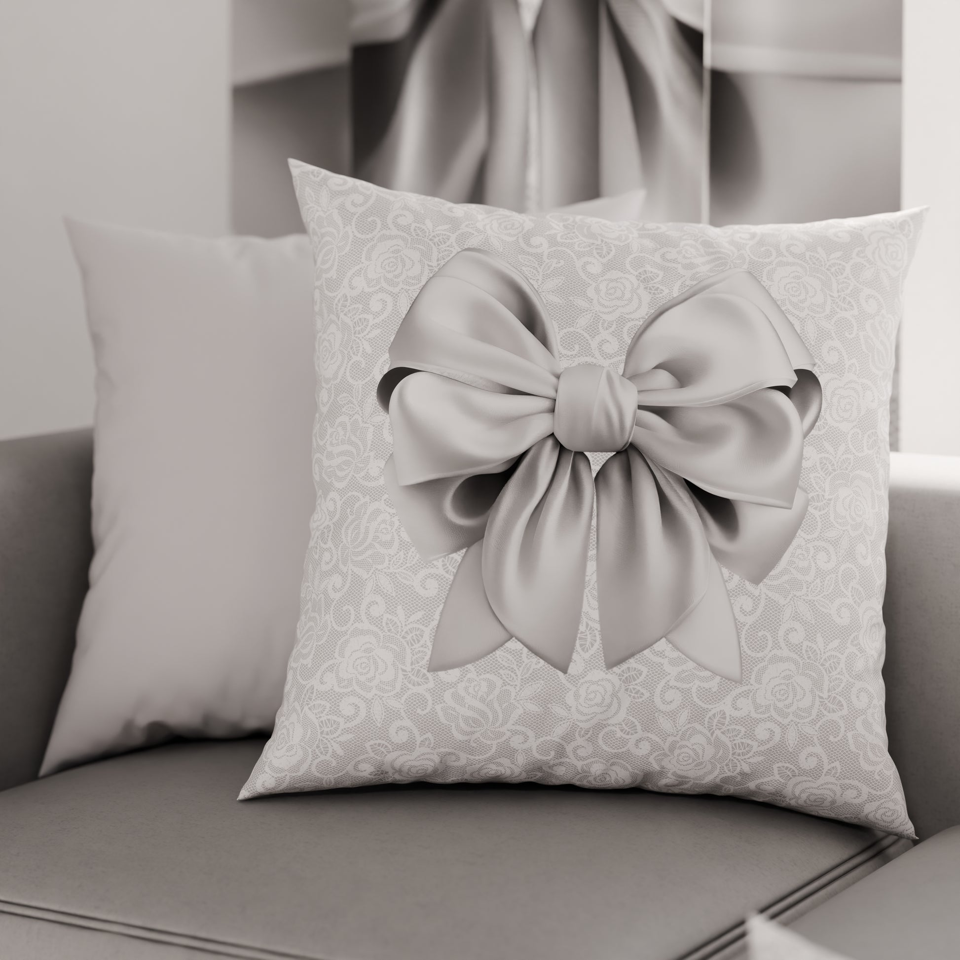 Cuscini, Copricuscini Divano, Cuscini Arredo in Stampa Digitale Fiocco Grigio