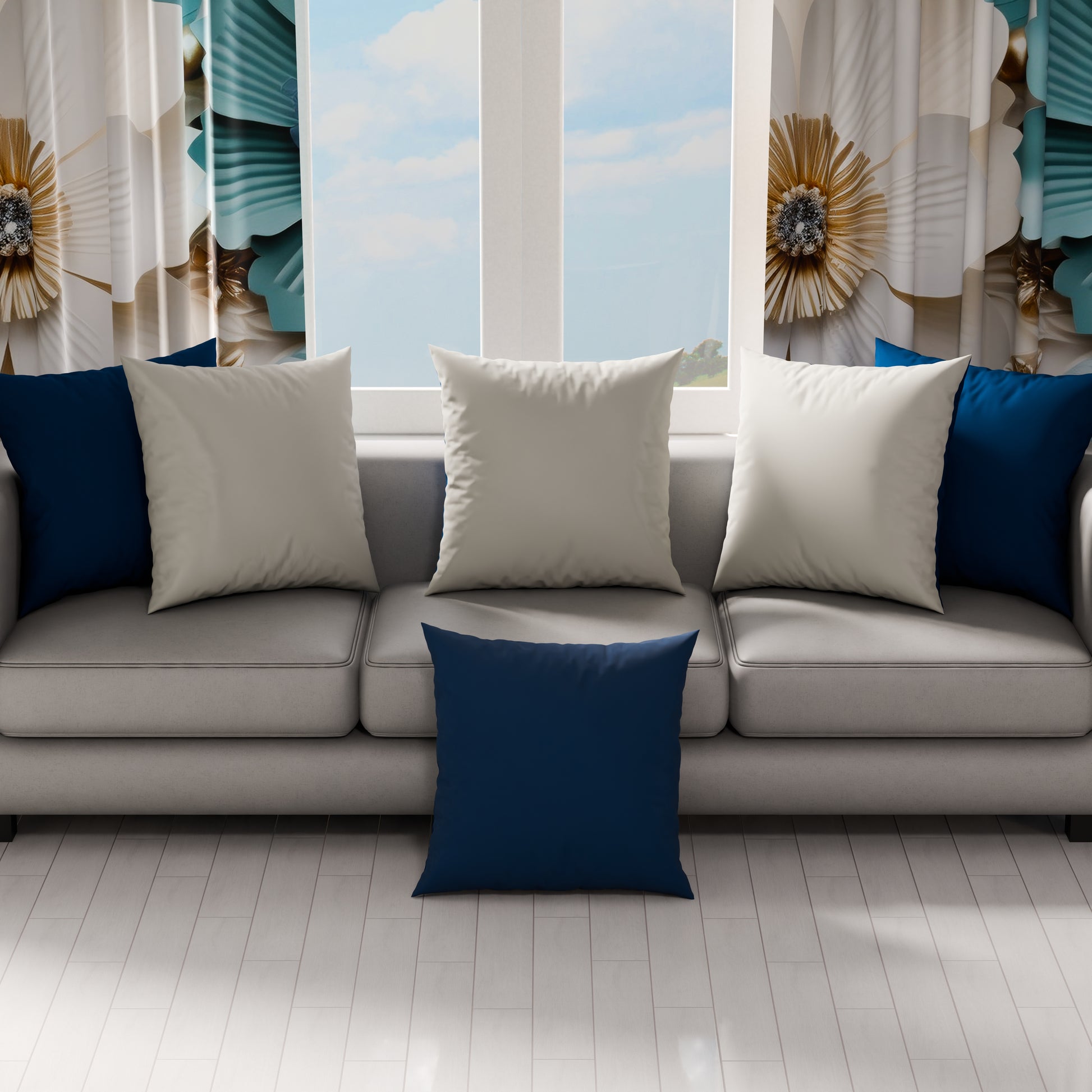 Cuscini, Copricuscini Divano, Cuscini Arredo in Tinta Unita, Grigio Chiaro/Blu Notte