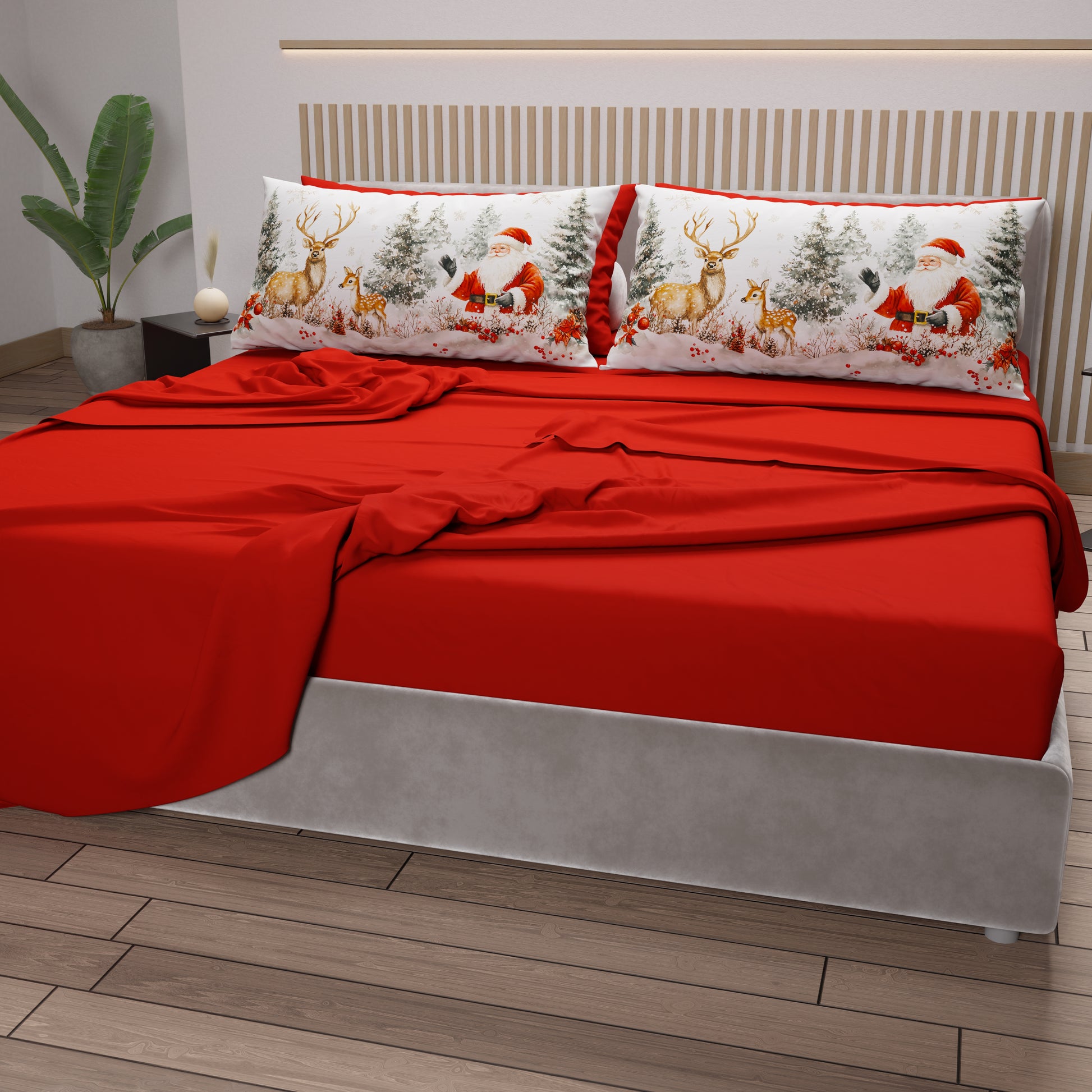 Lenzuola Natalizie in Cotone, Completo Letto con Federe in Stampa Digitale 25 Xmas 17