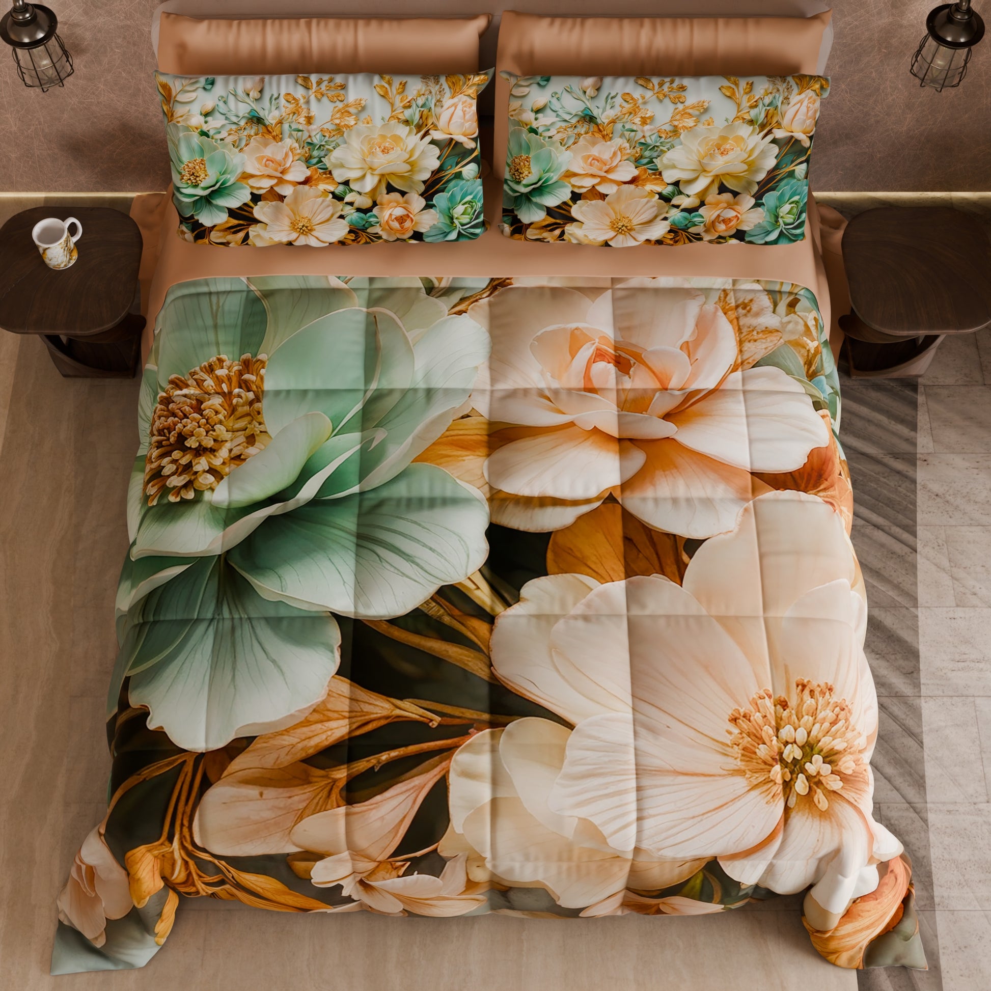 Piumone, Trapunta Matrimoniale, Singola, Piazza e Mezza Floreale 05-9