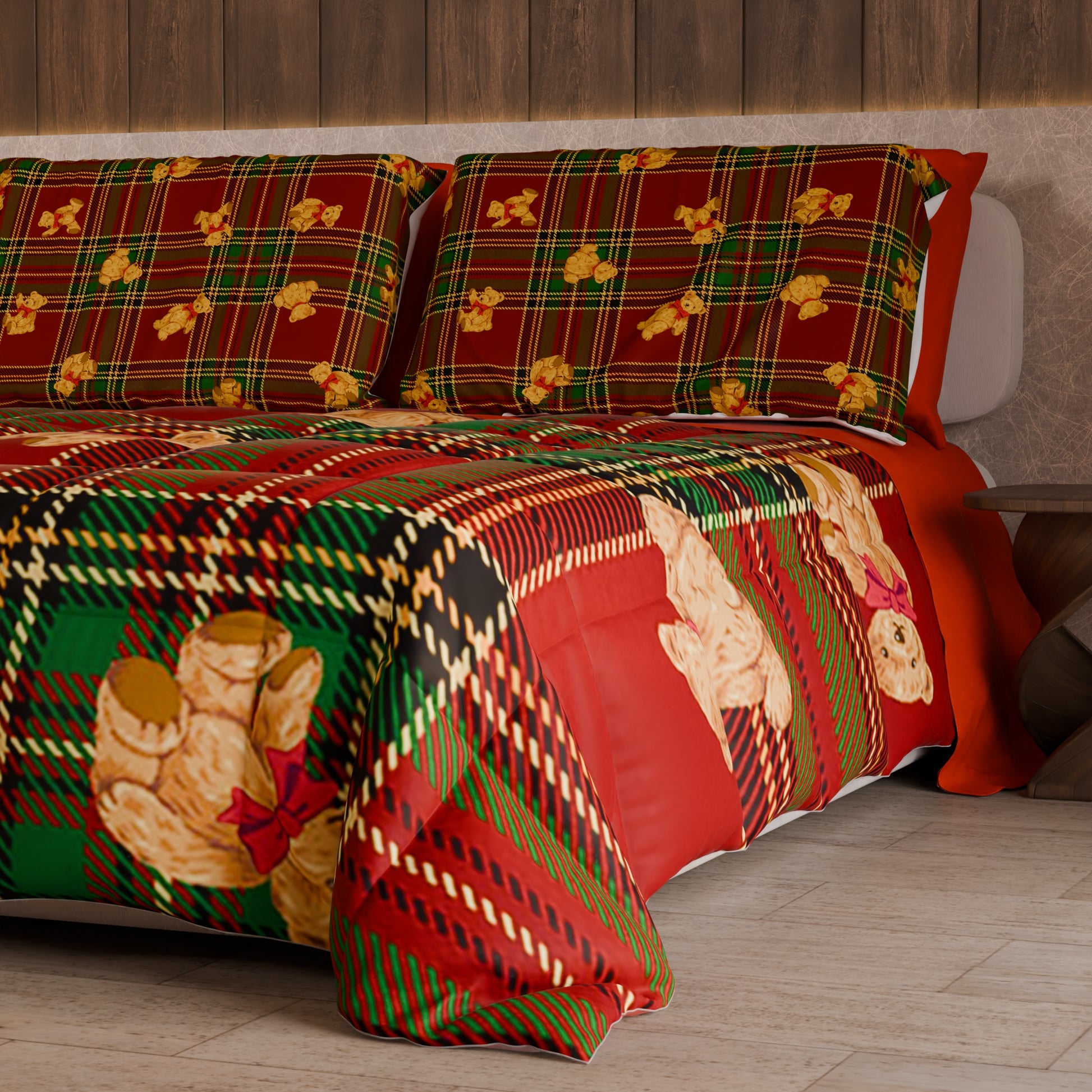 Trapunta Matrimoniale Natale, Singola, Piazza e Mezza Orsetto Tartan