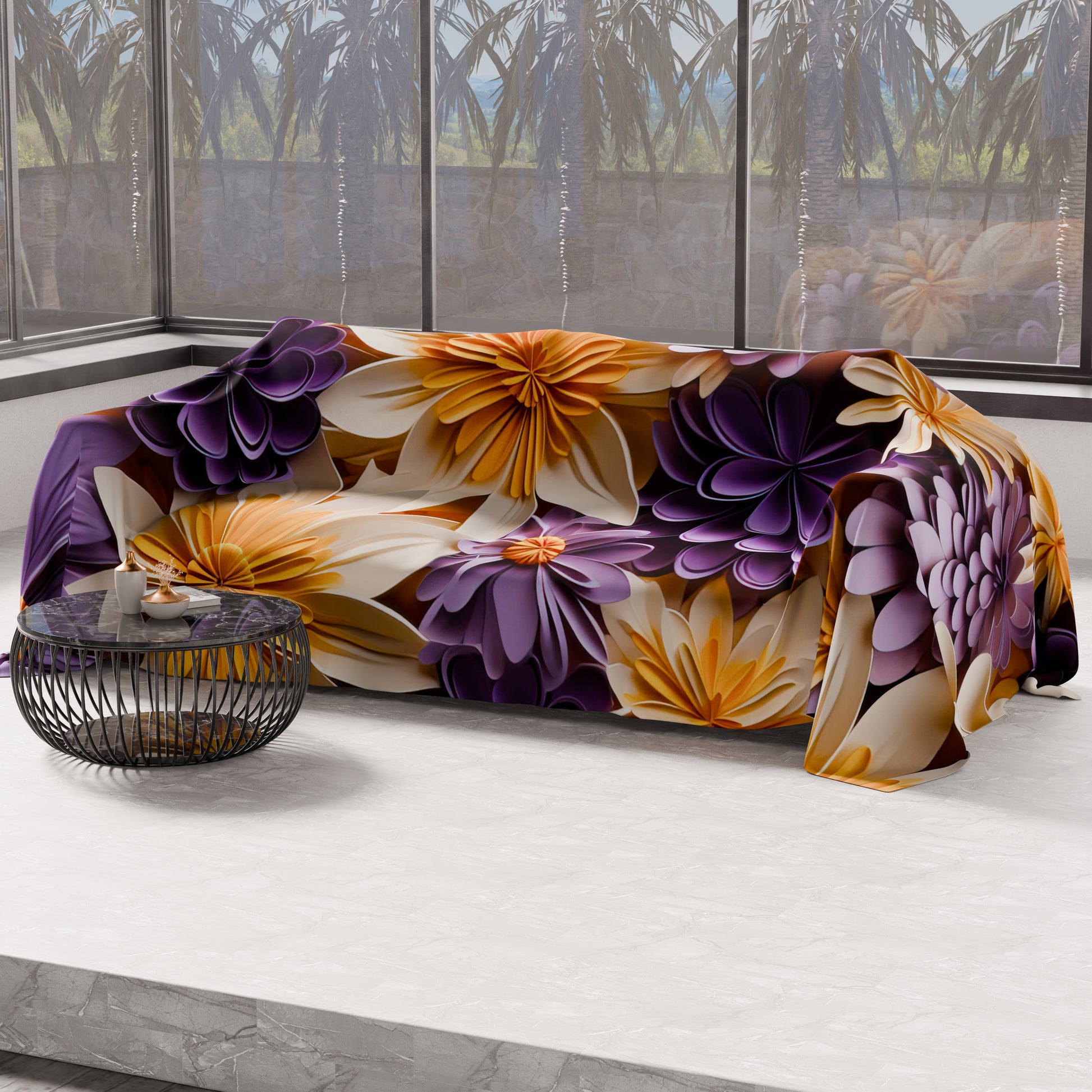 Telo Arredo Copridivano, Copriletto, Copritavolo e Copritutto in Microfibra | Fantasia Floreale 05-4