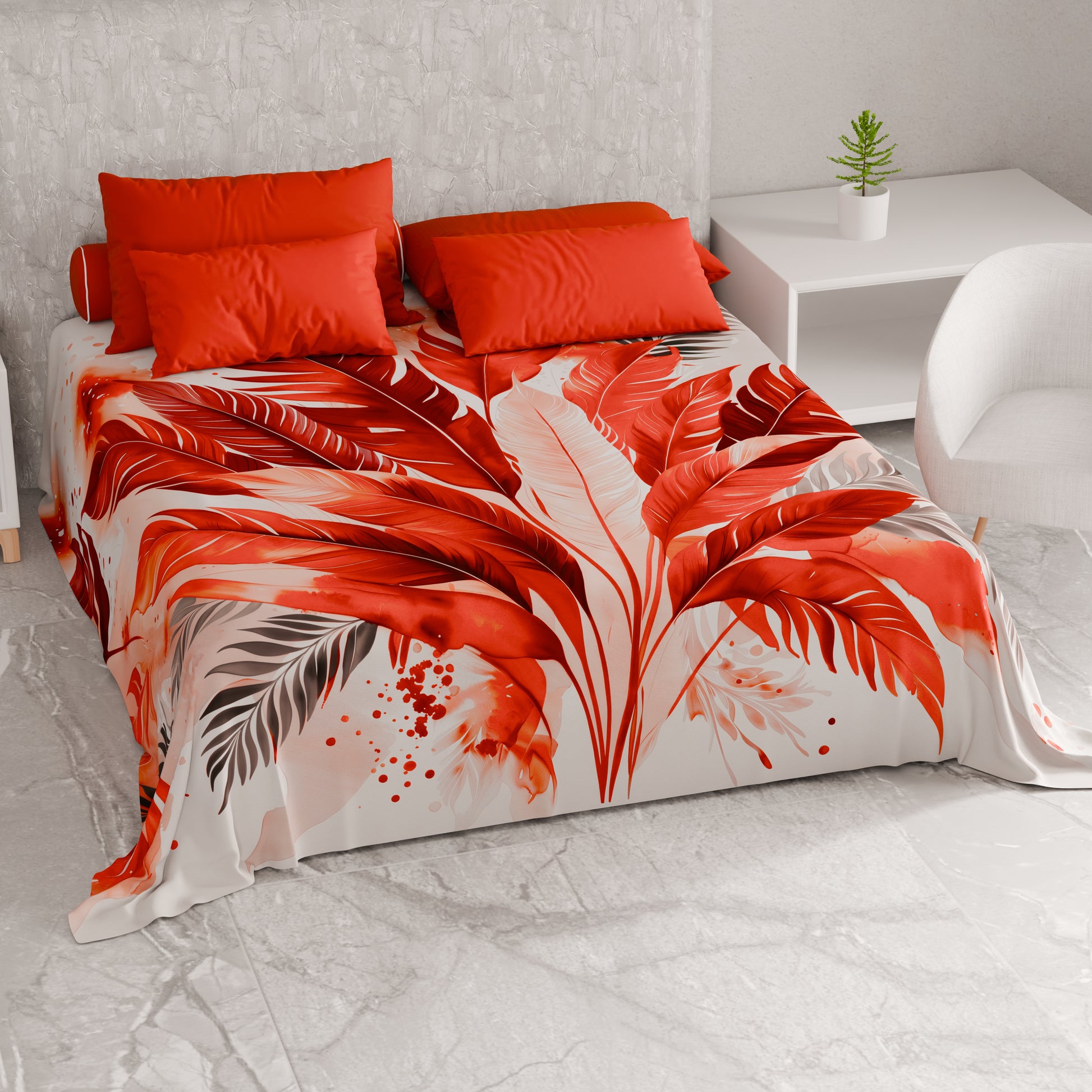 Telo Arredo Copridivano, Copriletto, Copritavolo e Copritutto in Microfibra | Fantasia Palmwater Rosso