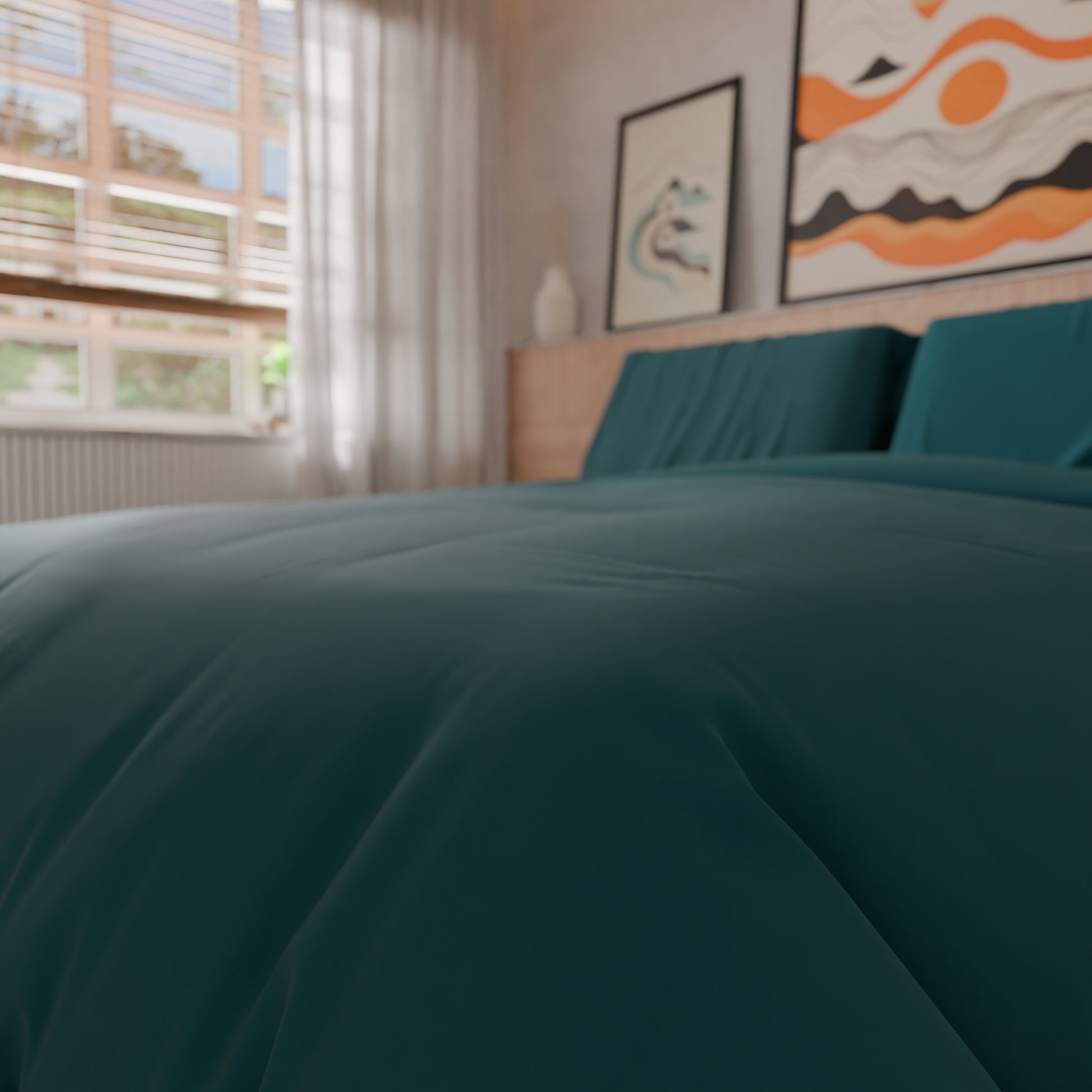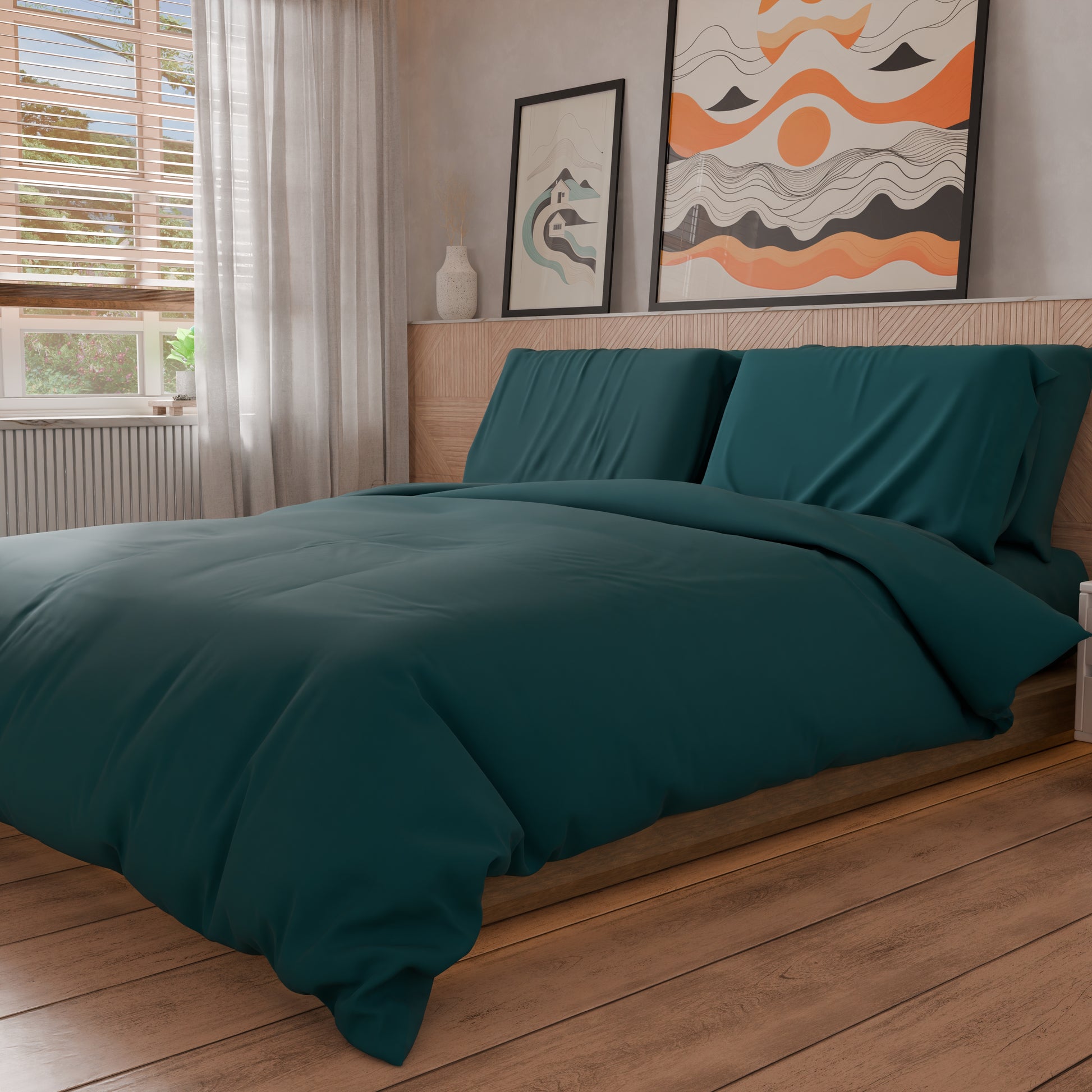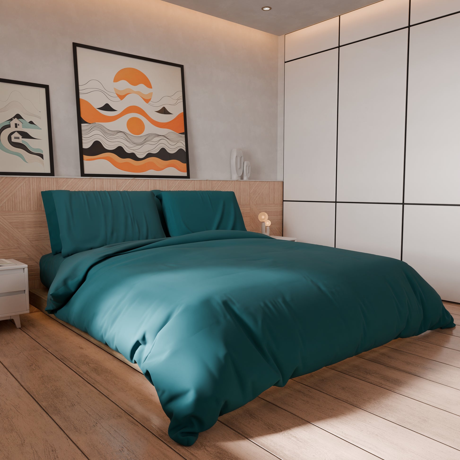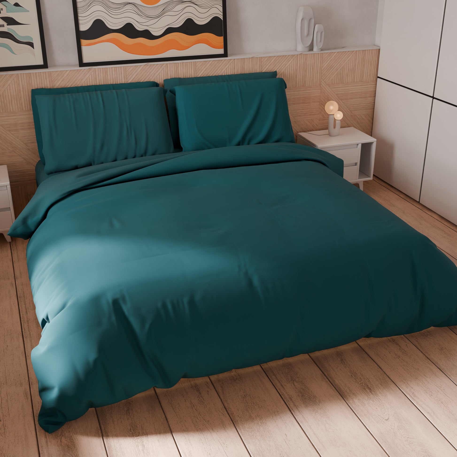 Copripiumino Matrimoniale, Sacco Copripiumino e Federe, Tinta Unita Ottanio