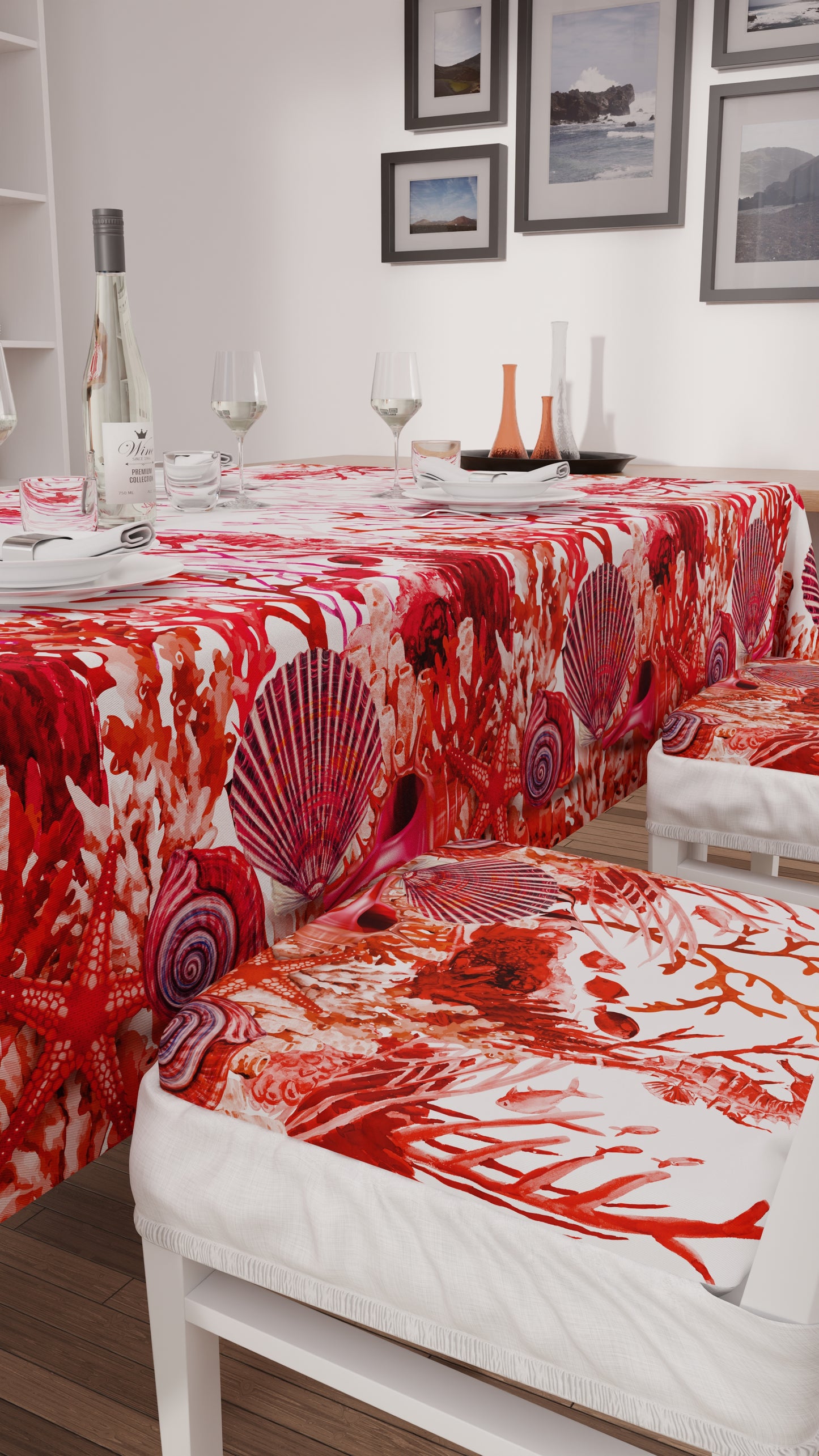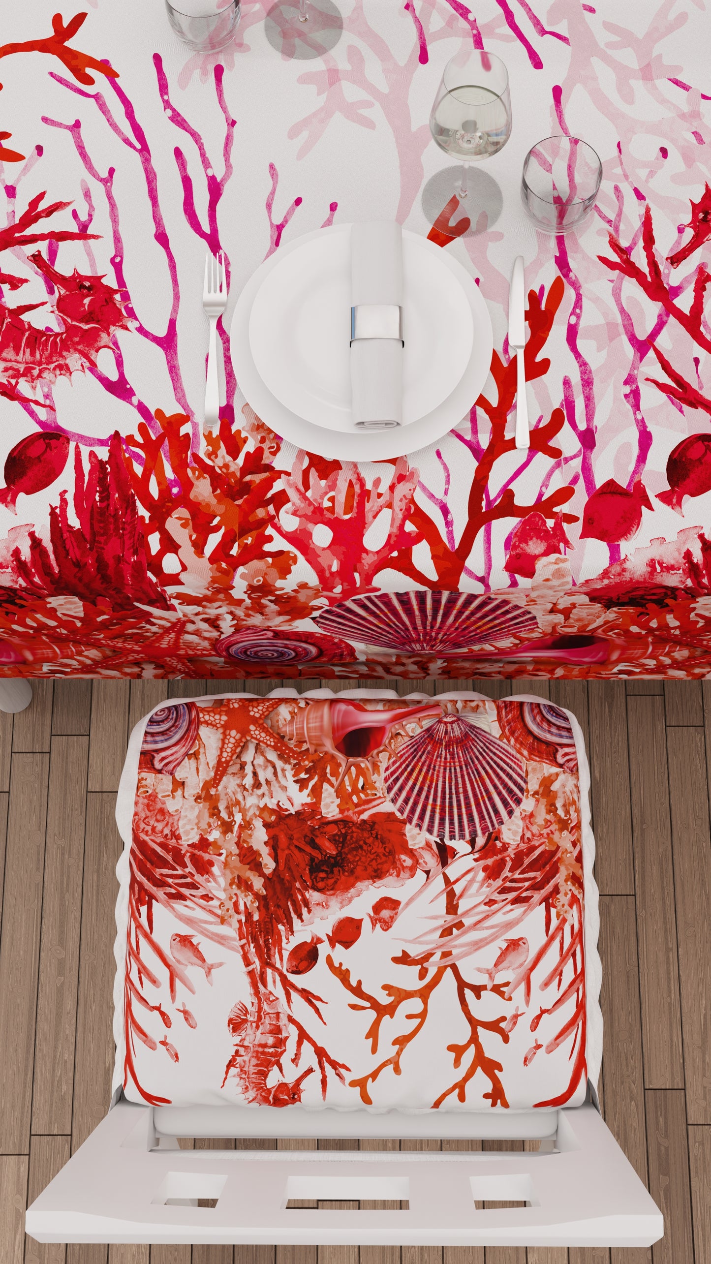 Cuscini per Sedie con Elastico Coprisedia in Stampa Digitale Corallo Rosso