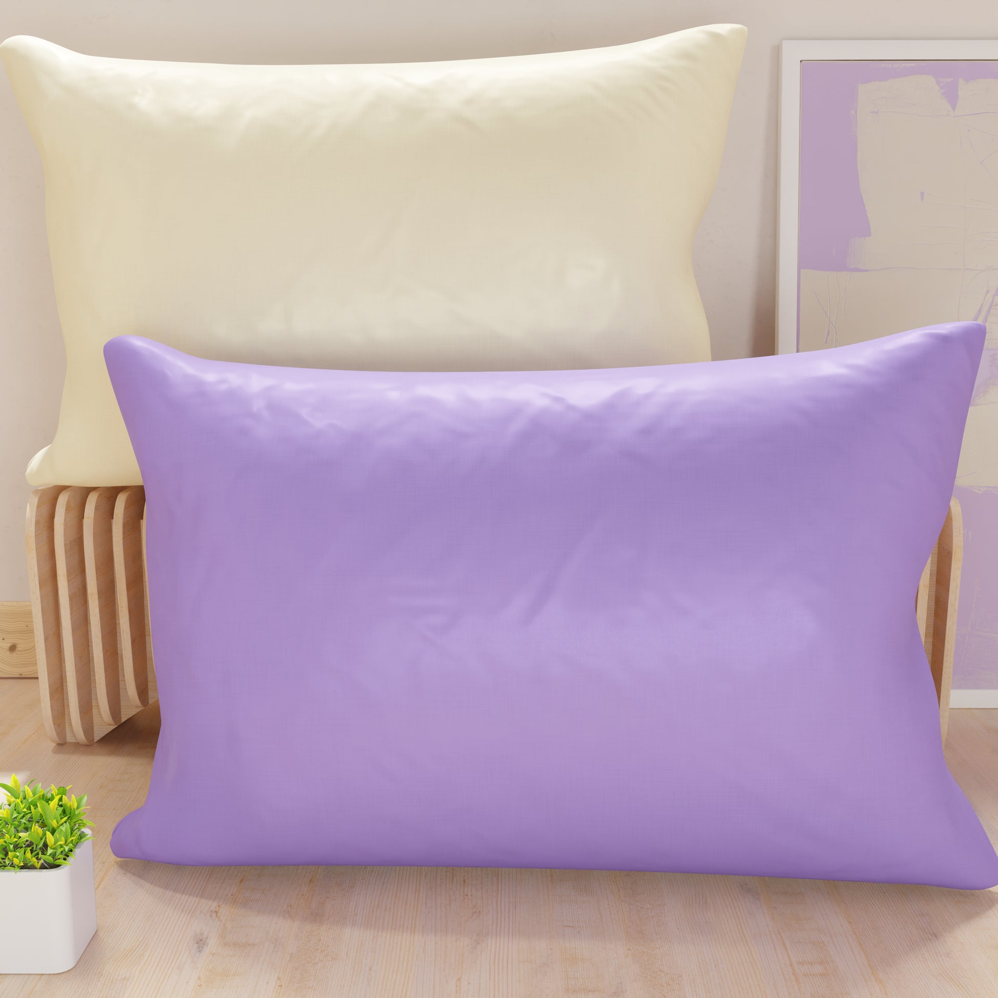 Federe, Coppia Federe, Copricuscini, 100% Microfibra Anallergica, Lilla/Panna