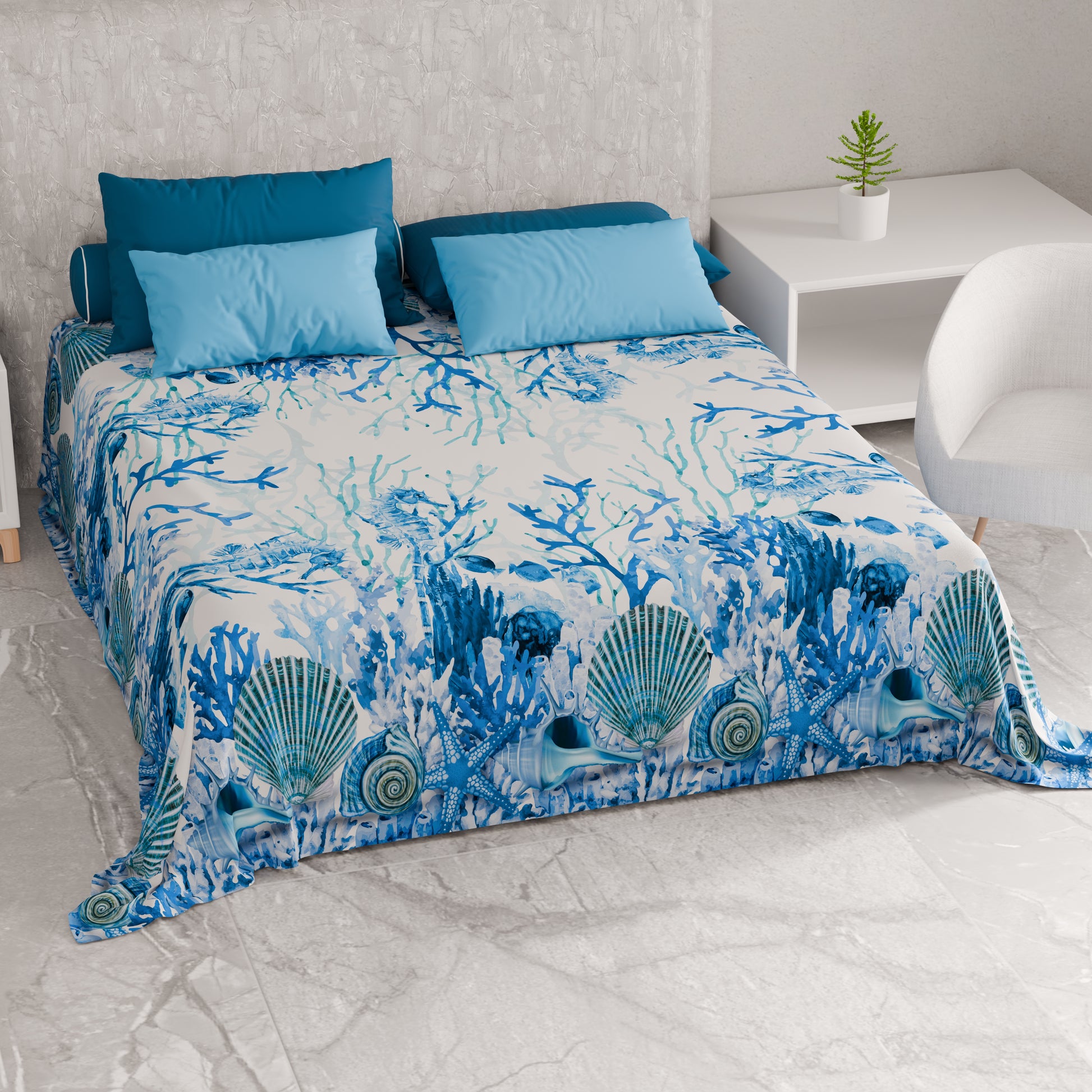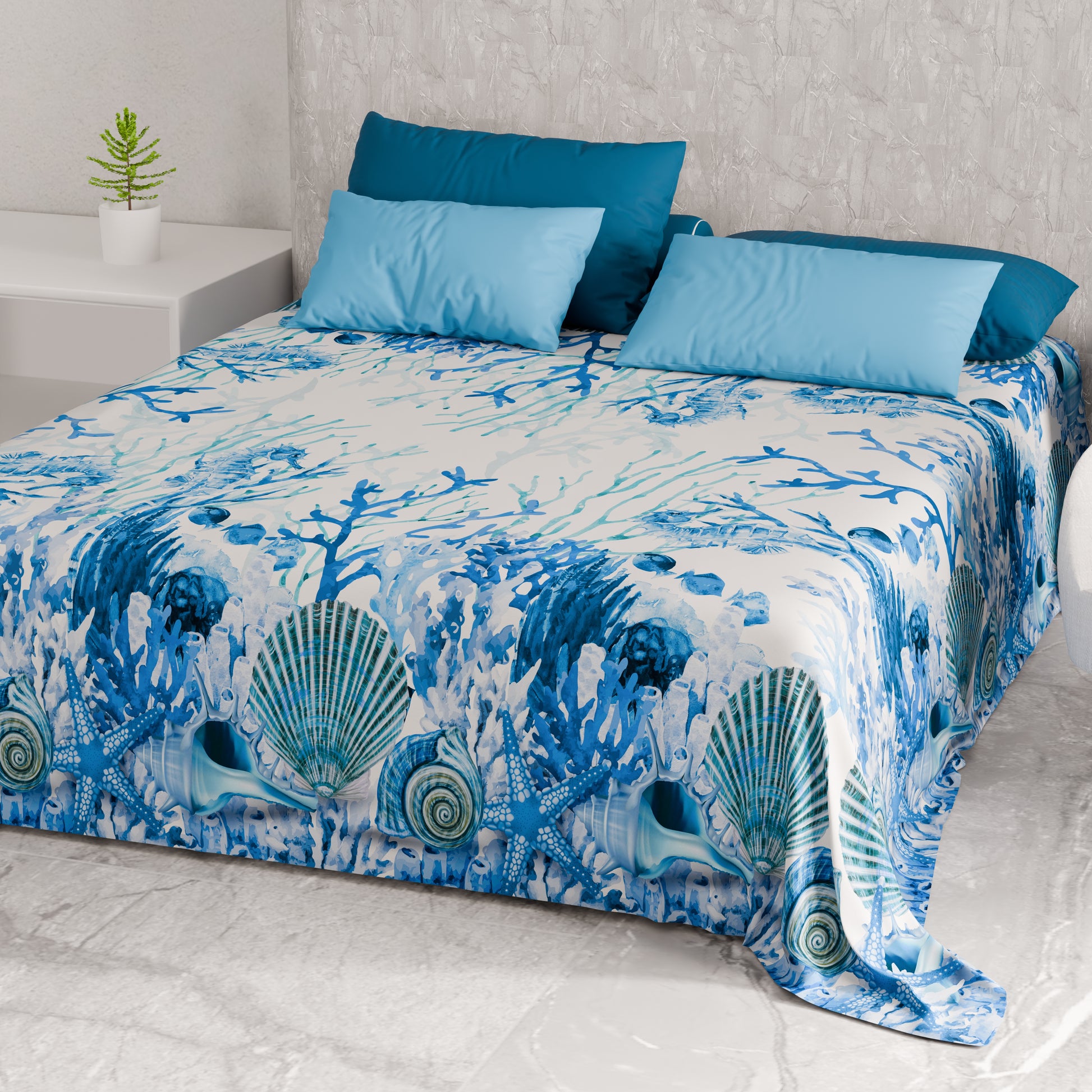 Telo Arredo Copridivano, Copriletto, Copritavolo e Copritutto in Microfibra | Fantasia Corallo Blu