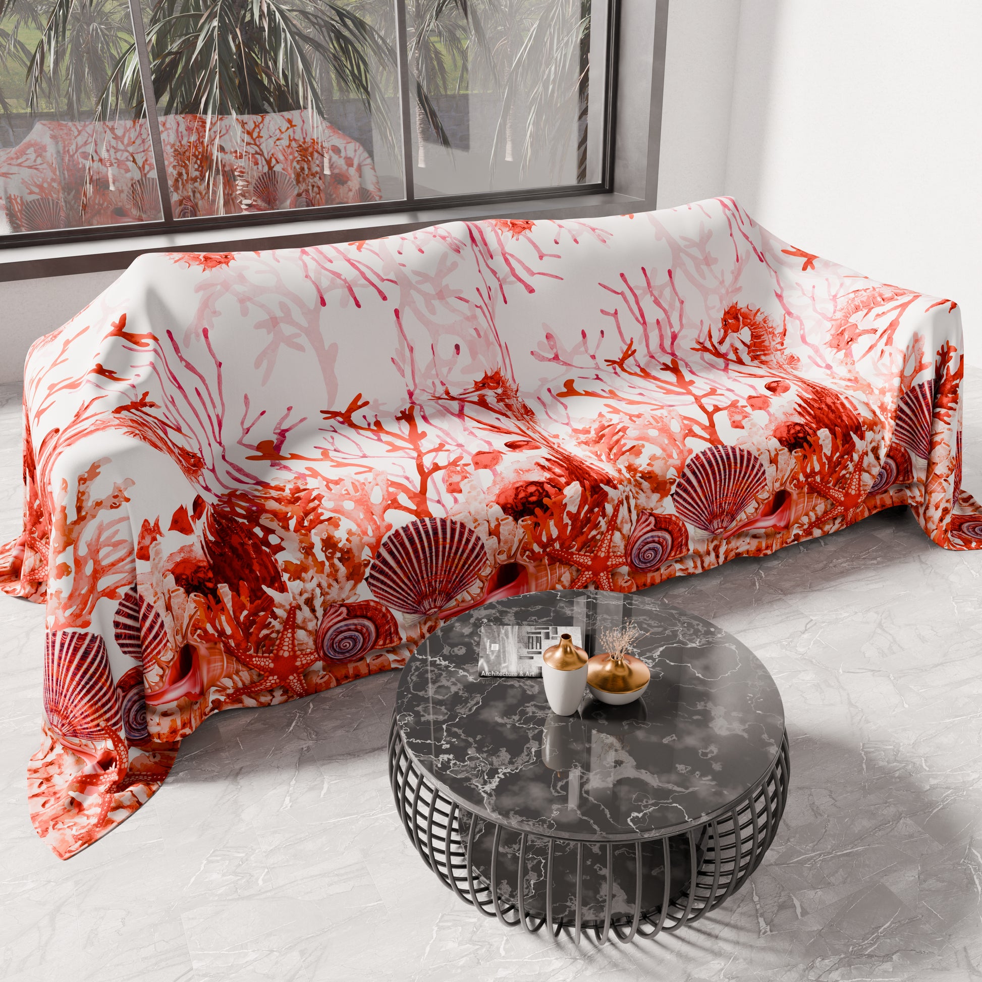 Telo Arredo Copridivano, Copriletto, Copritavolo e Copritutto in Microfibra | Fantasia Corallo Rosso