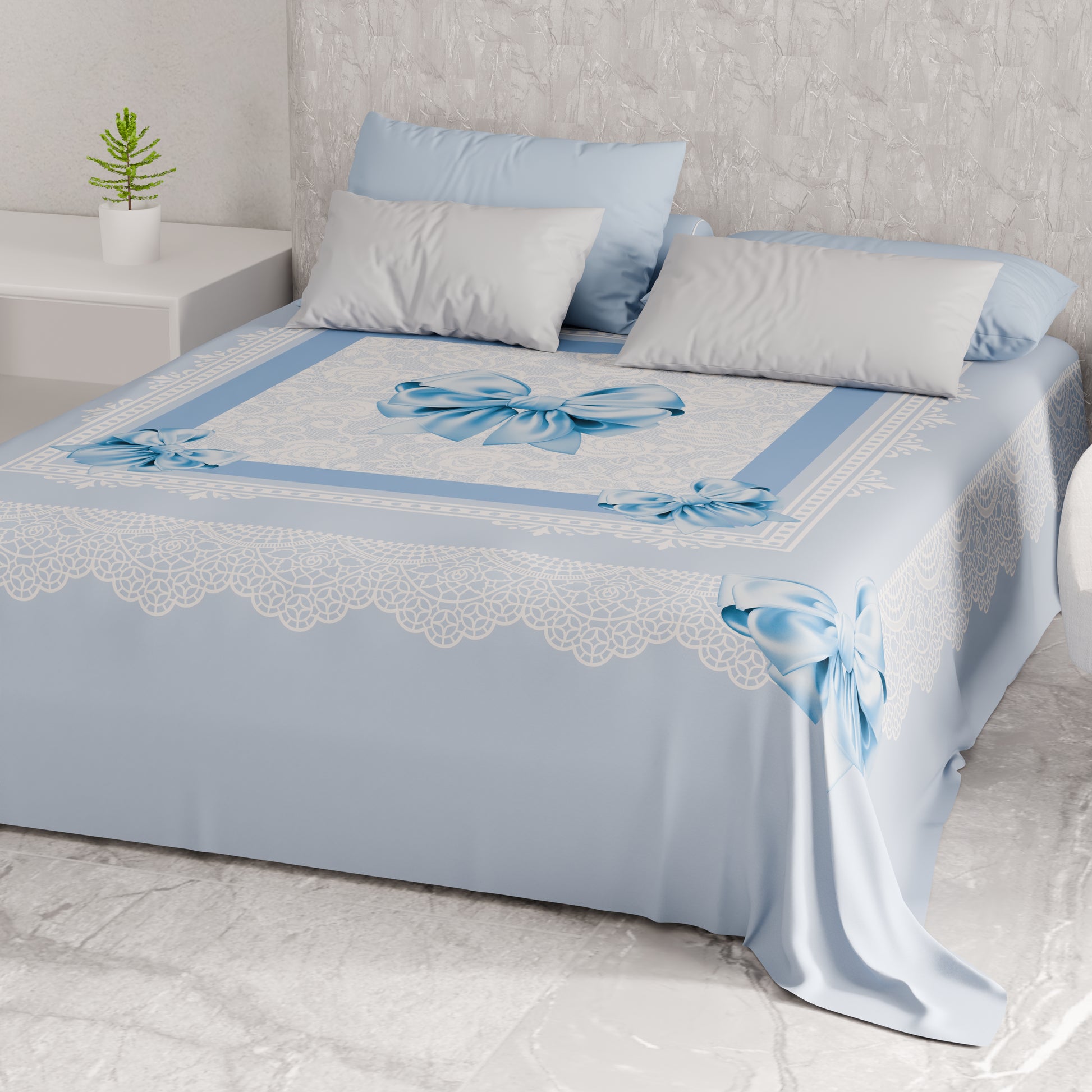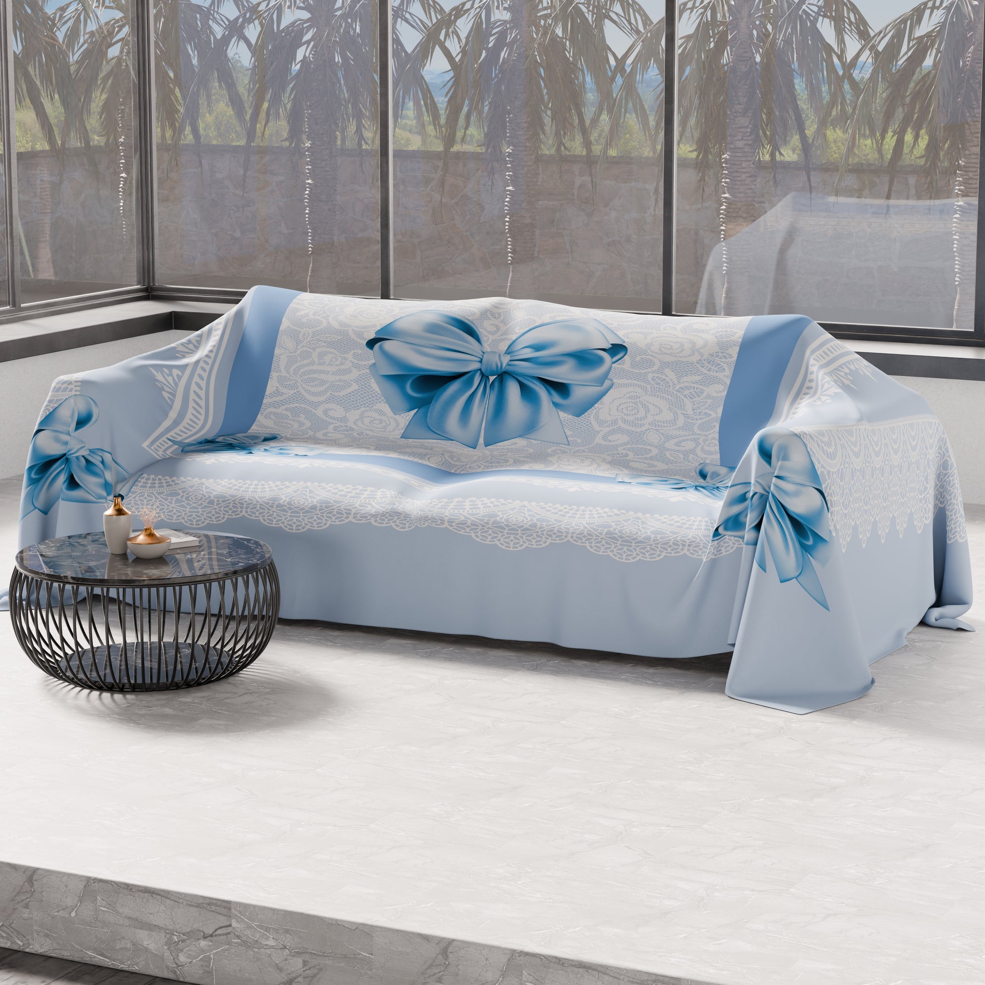 Telo Arredo Copridivano, Copriletto, Copritavolo e Copritutto in Microfibra | Fantasia Fiocco Celeste