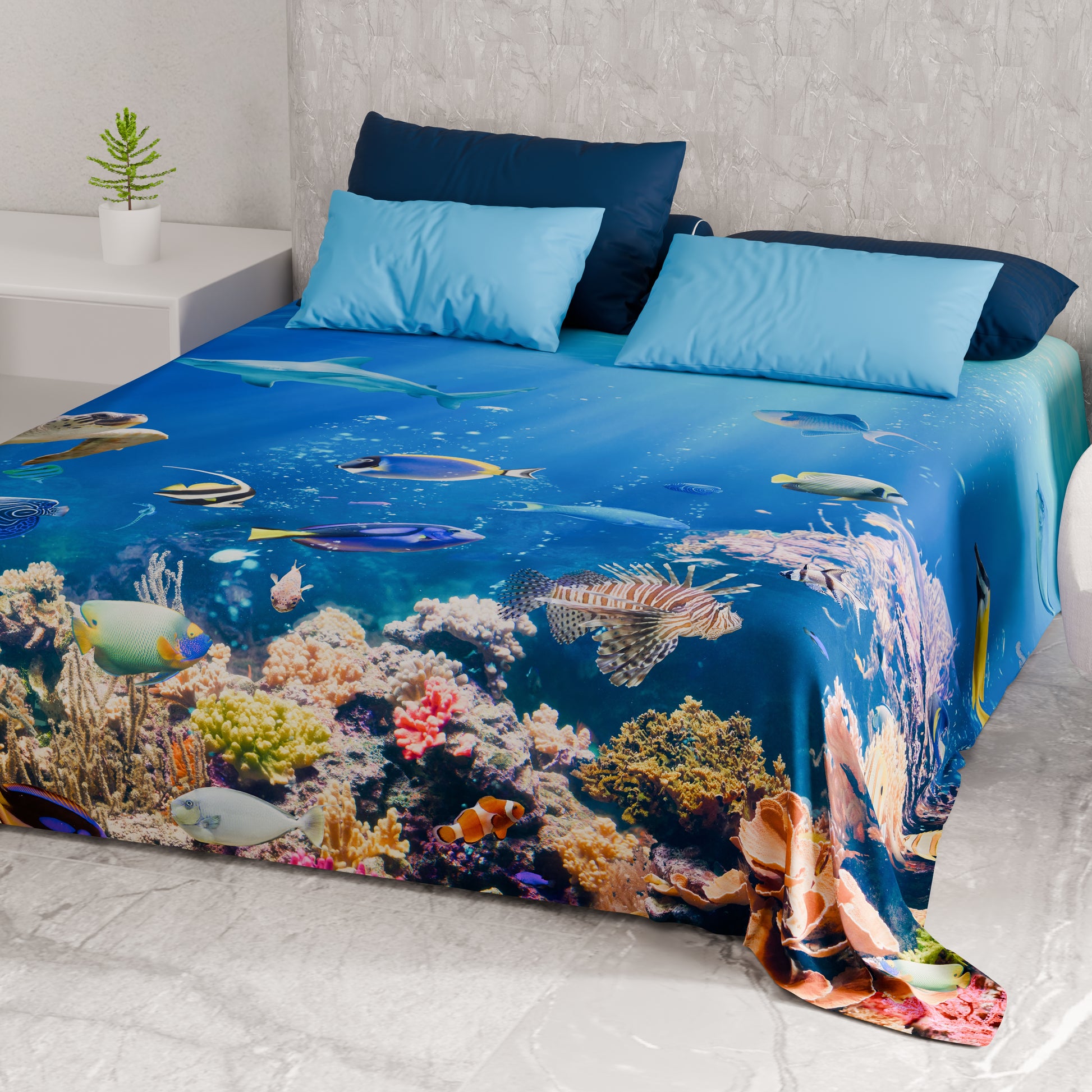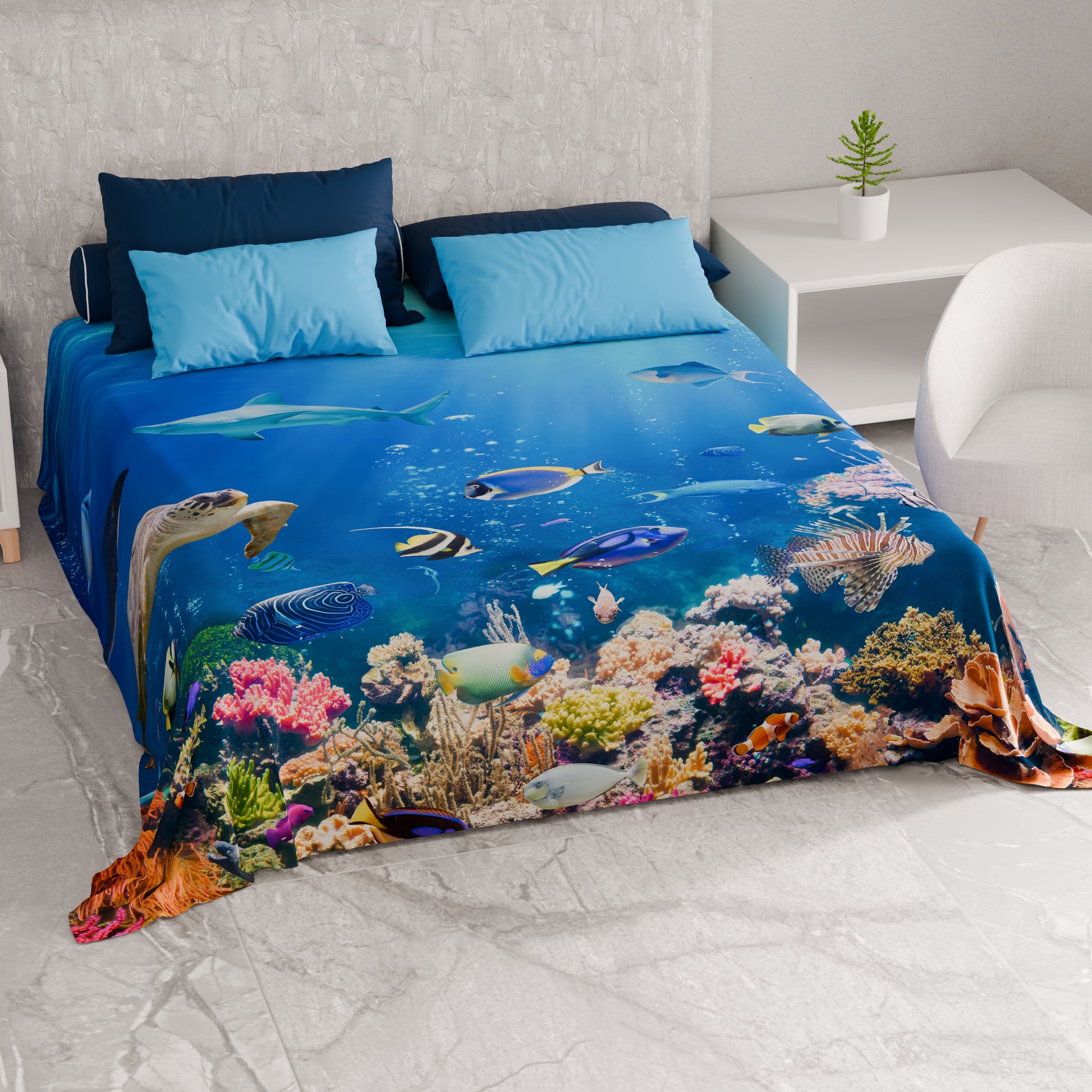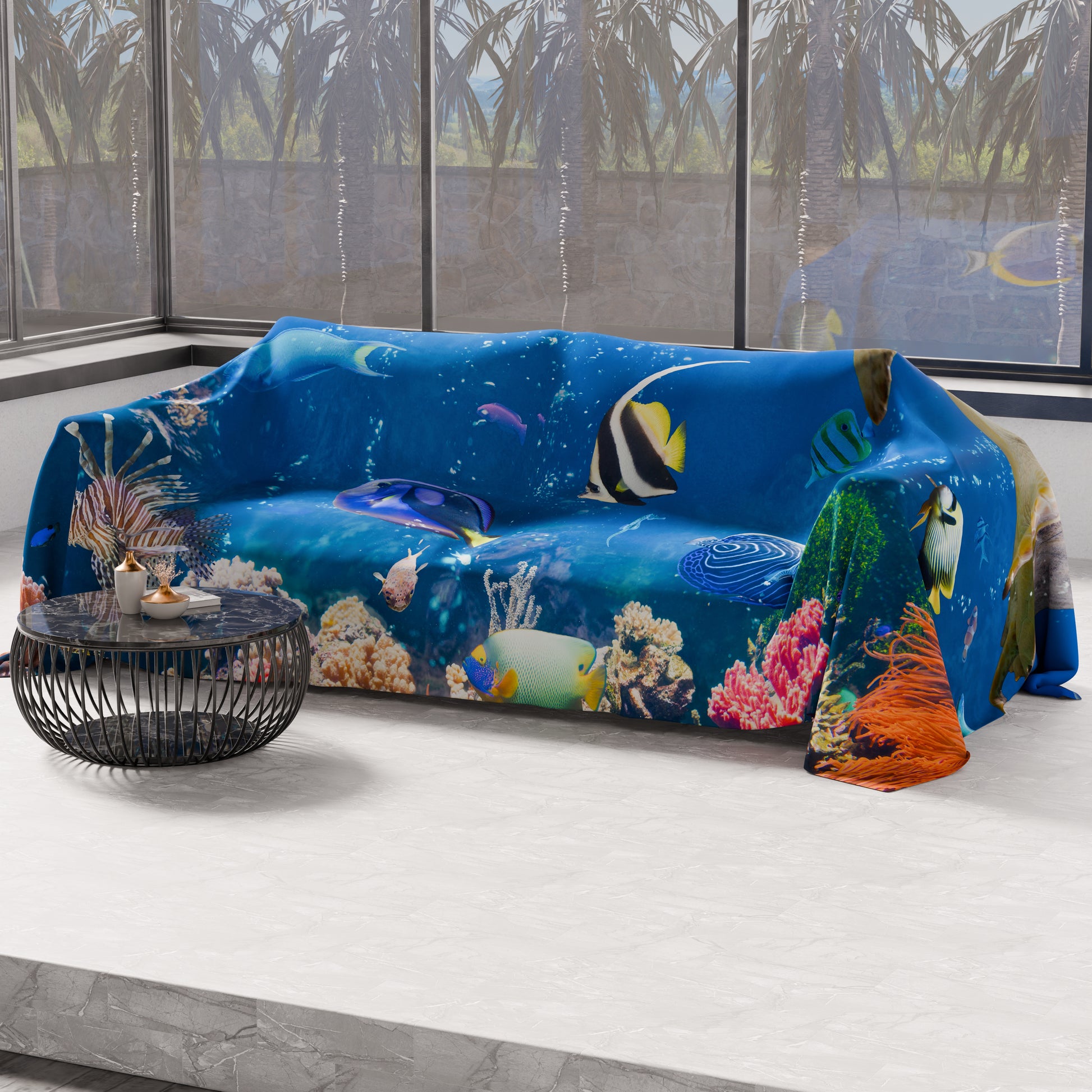 Telo Arredo Copridivano, Copriletto, Copritavolo e Copritutto in Microfibra | Fantasia Acquario