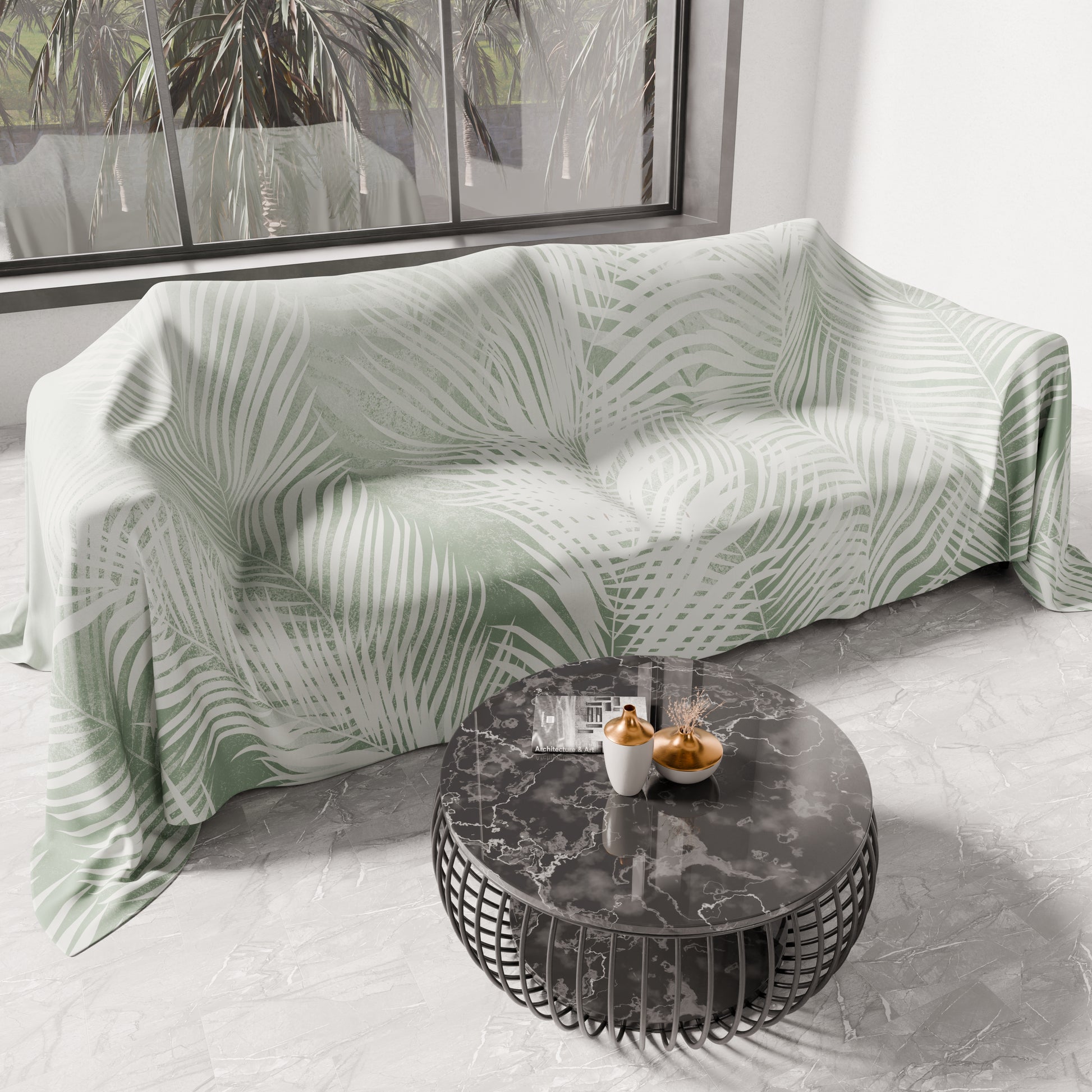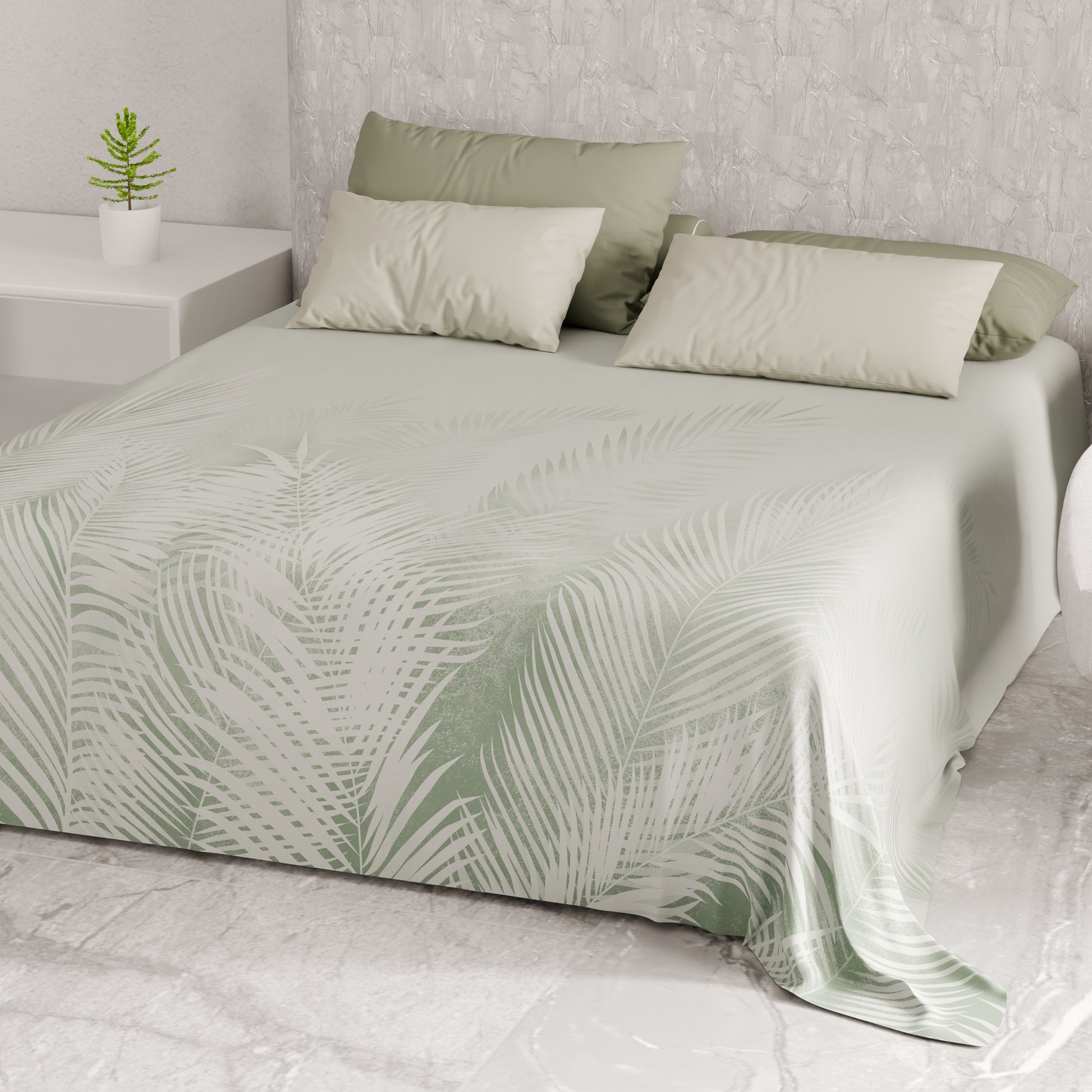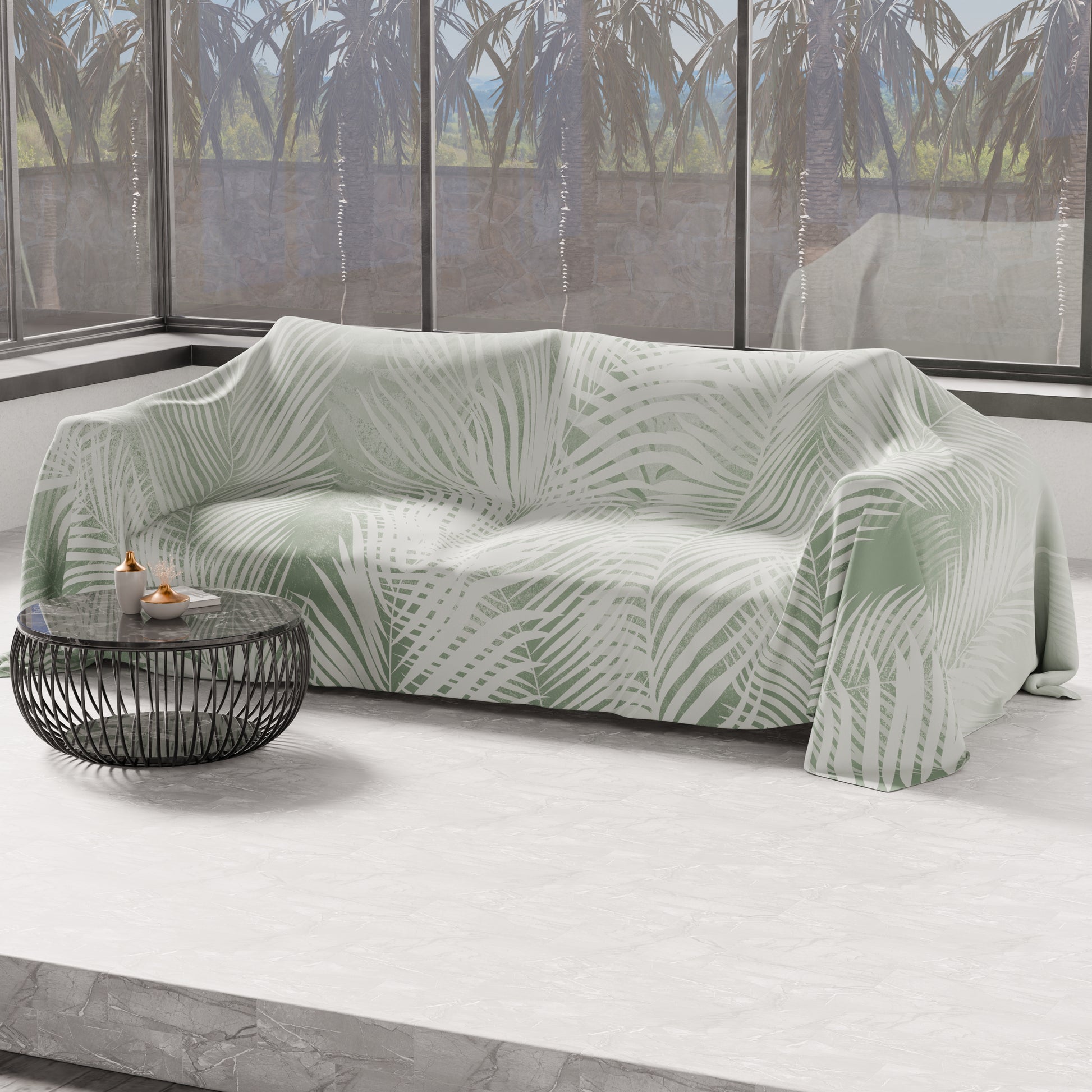 Telo Arredo Copridivano, Copriletto, Copritavolo e Copritutto in Microfibra | Fantasia Foglia Salvia